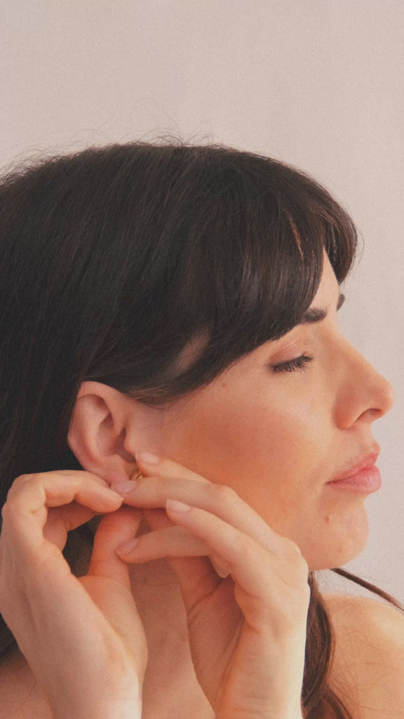 Transformable earrings with pure volume and an organic silhouette.